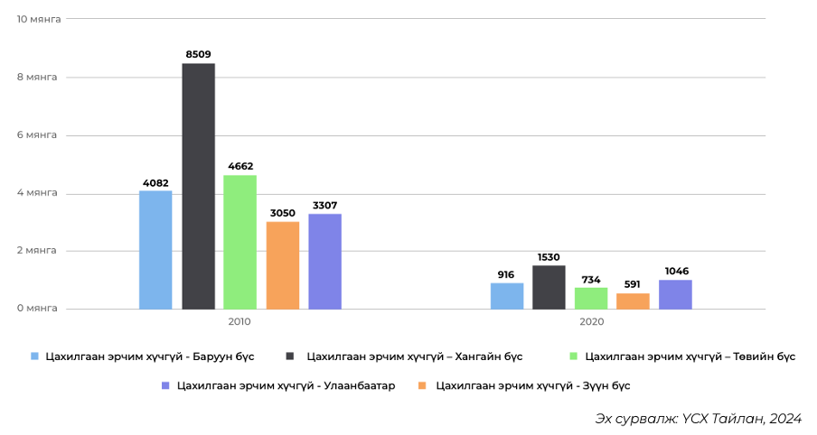 Зураг 1. Цахилгаан эрчим хүчгүй өрхийн тоо (бүсээр)